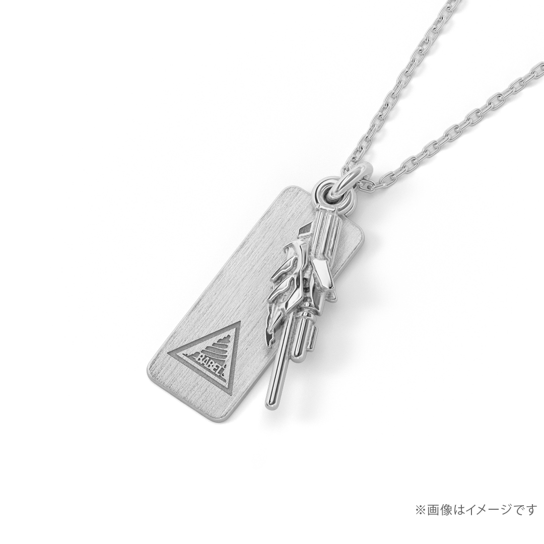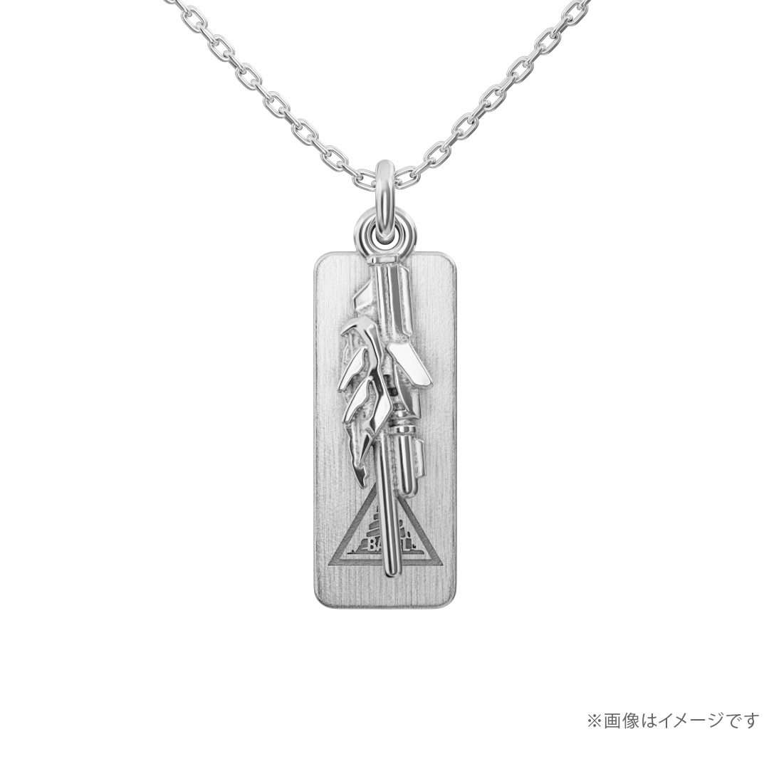 ウィシャデルの武器をチャームのデザインに落とし込んだプレートネックレス。プレート部分には所属陣営のエンブレムを刻印しました。