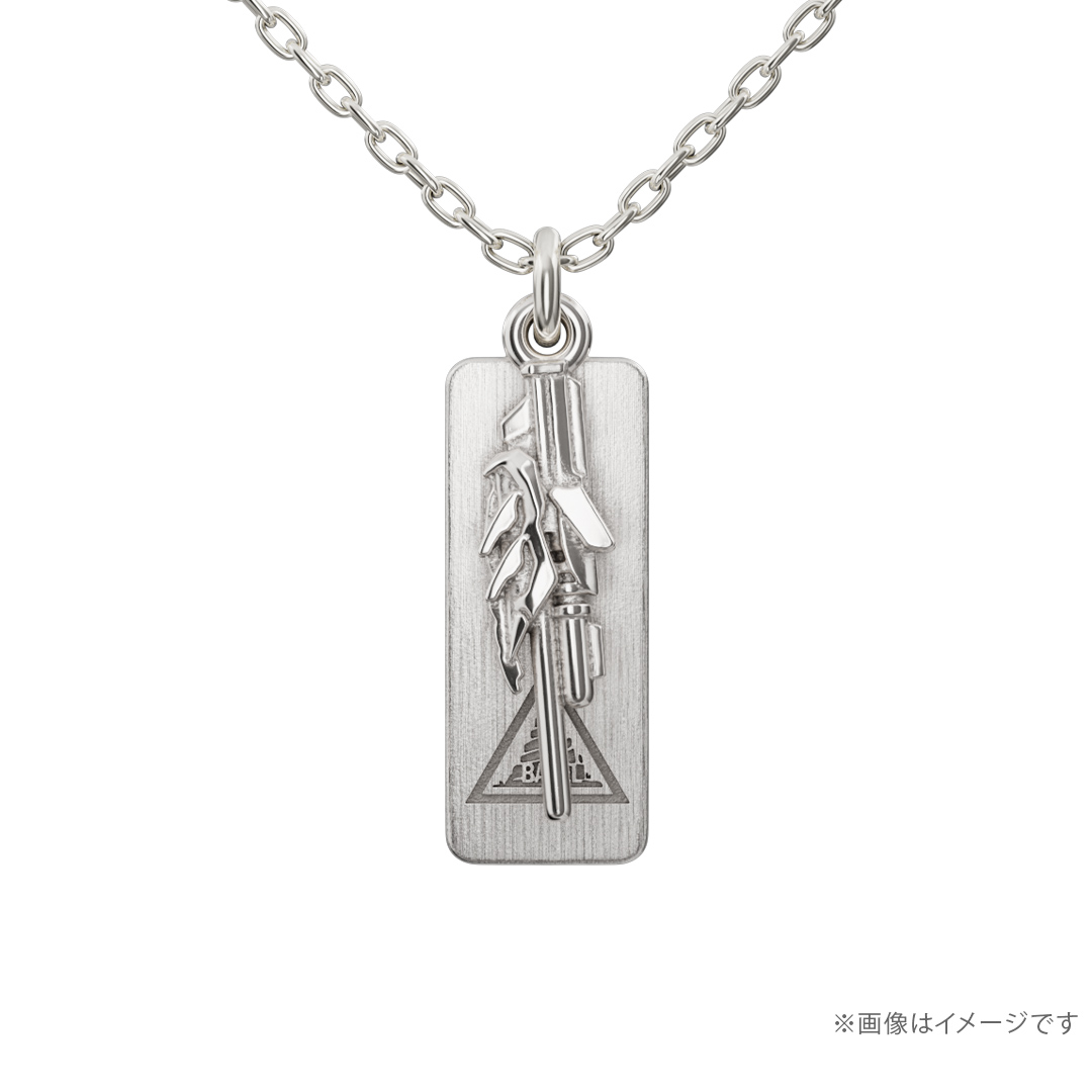ウィシャデルの武器をチャームのデザインに落とし込んだプレートネックレス。プレート部分には所属陣営のエンブレムを刻印しました。