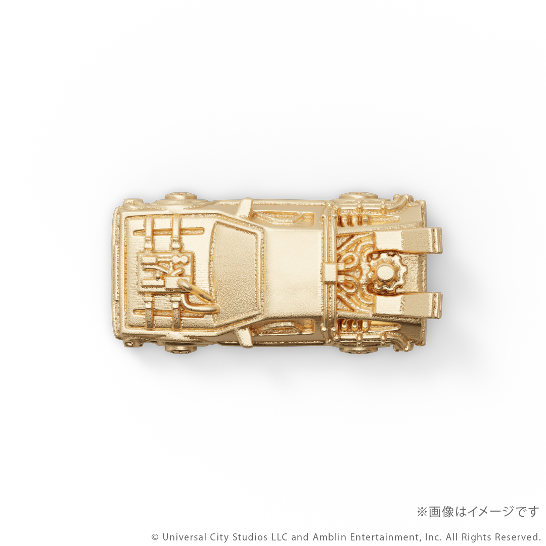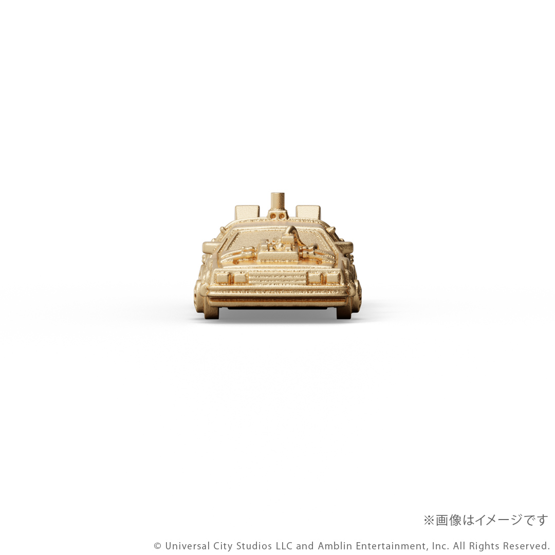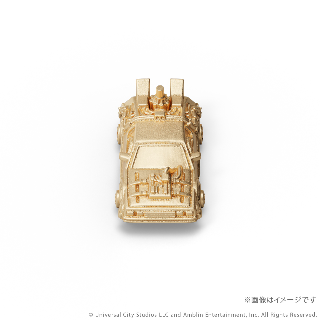 『バック・トゥ・ザ・フューチャー』シリーズに登場するタイムマシンを、K18イエローゴールド製のミニチュアサイズで再現。
