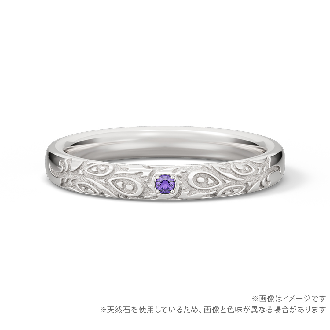 リングの中央にはキャストをイメージした天然石を留め、内側にはキャストの名前を英語で刻印します。