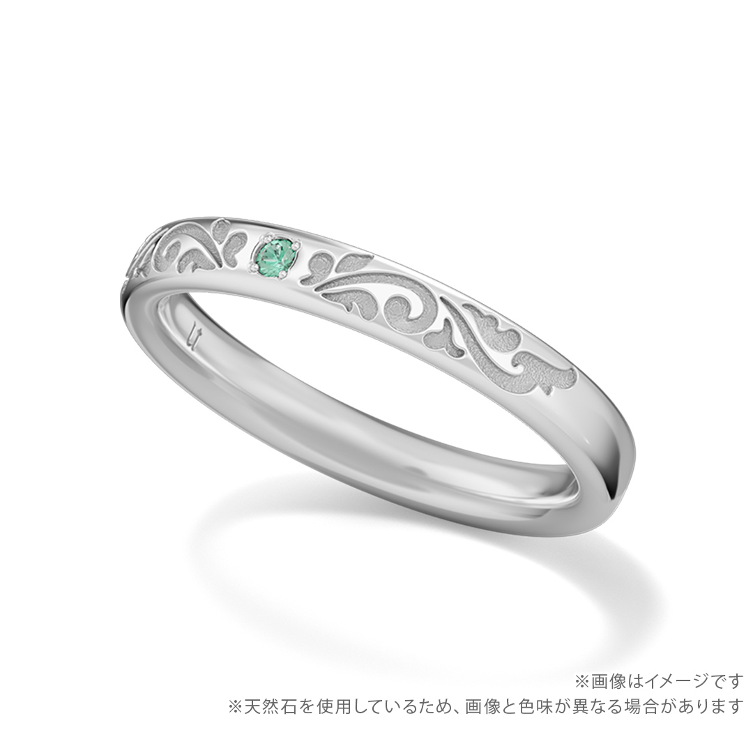 リングの中央にはキャストをイメージした天然石を留め、内側にはキャストの名前を英語で刻印します。