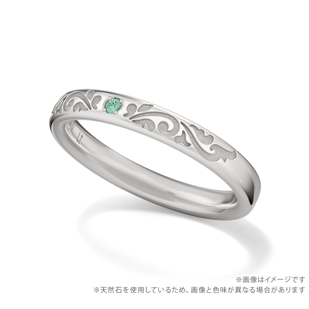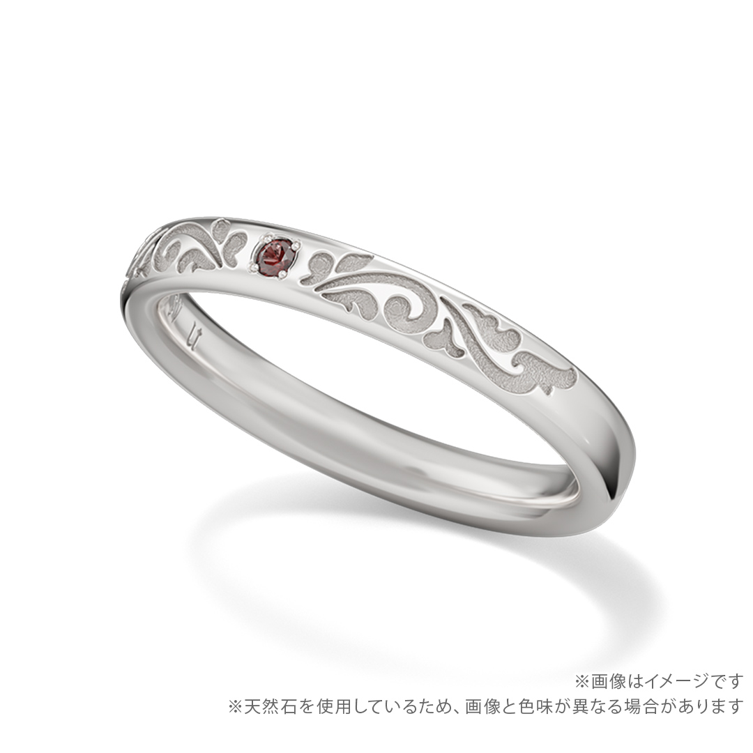 リングの中央にはキャストをイメージした天然石を留め、内側にはキャストの名前を英語で刻印します。