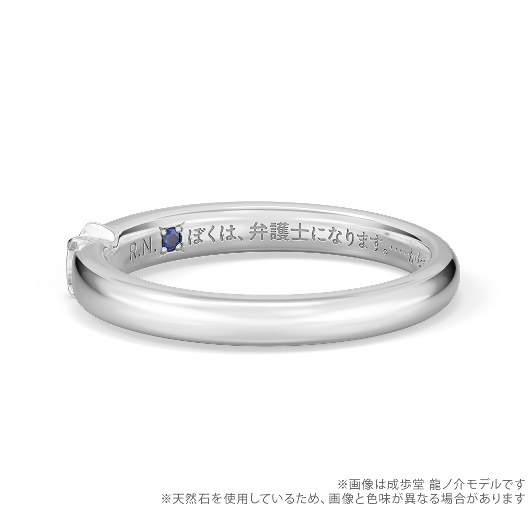 内側には各キャラクターのイニシャルと印象的なセリフを刻印。それぞれのキャラクターをイメージした天然石も忍ばせました。