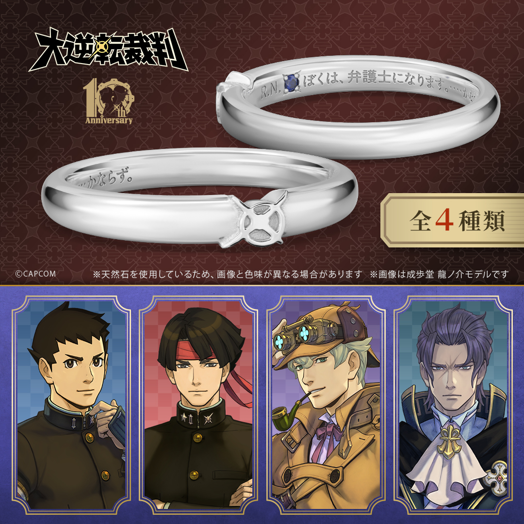 「逆転裁判」シリーズより、19世紀末が舞台の「大逆転裁判」シリーズの10周年を記念したメッセージリングが登場。