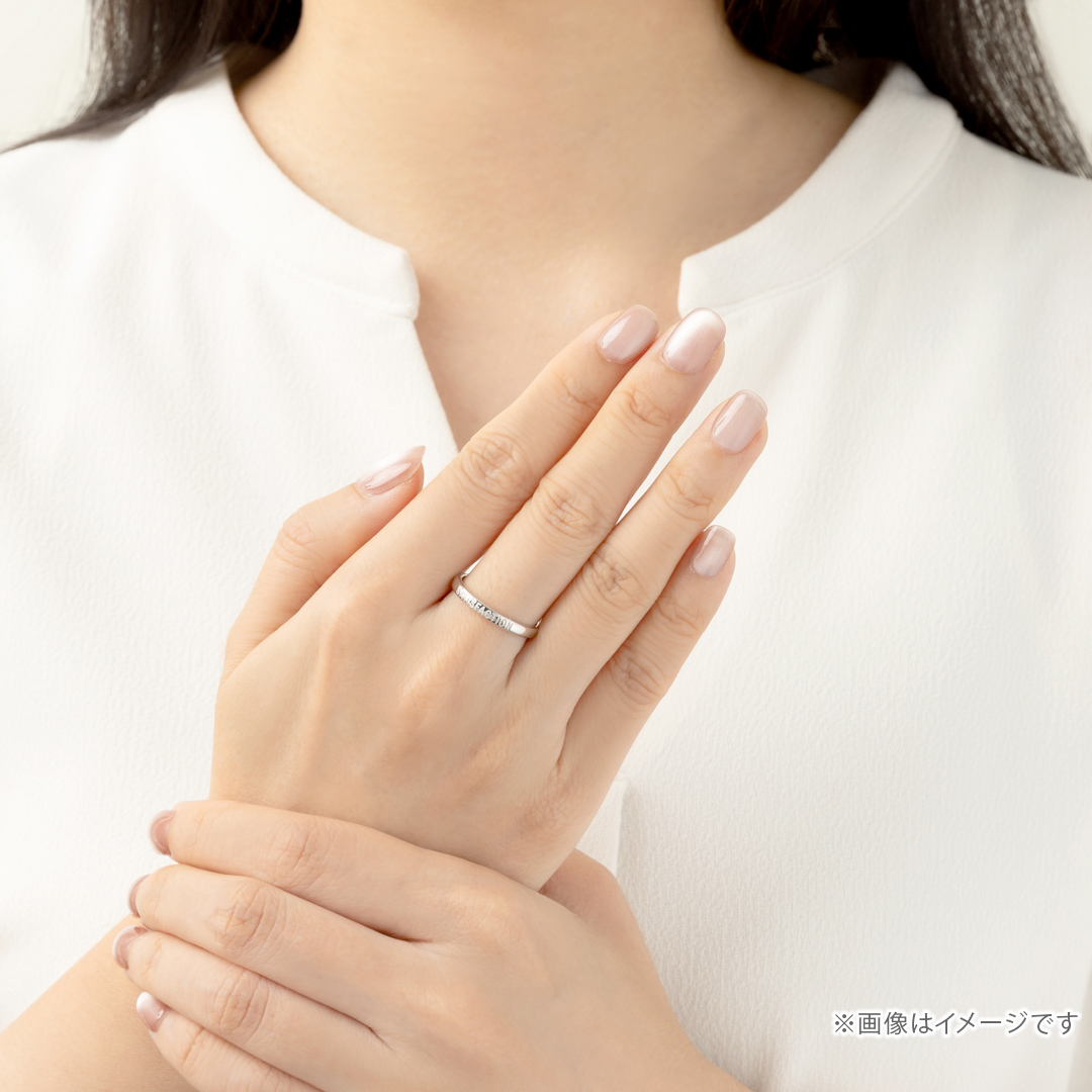 リングの中央に「SATISFACTION」の文字を刻んだ、普段使いしやすいシンプルなデザインです。